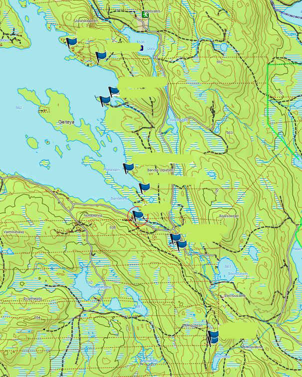 Kartet dere ser nedenfor har merket av hvilke hytter som har meldt sin interesse for strøm pr. 1/10-2019.